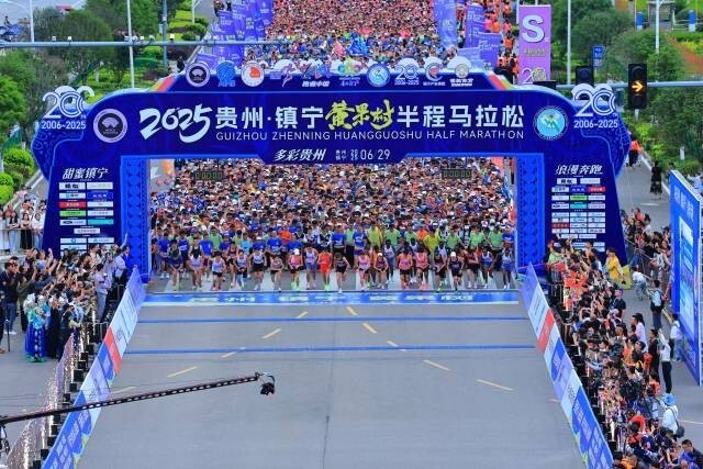 近日,2025贵州·镇宁黄果树半程马拉松在贵州省镇宁自治县顺利开赛,来自世界各地的长跑爱好者齐聚一堂,共同参与这场体育盛宴。12000人在热烈的欢呼声中冲出起跑线,奔向黄果树大瀑布,场面壮观。