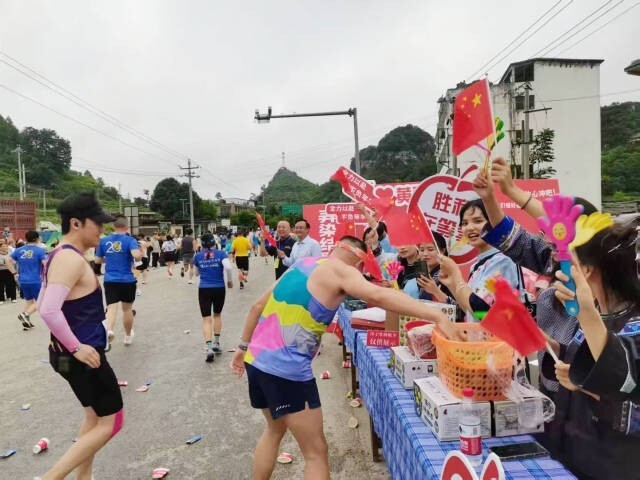 镇宁乡亲在沿途为跑者送上甜蜜蜂糖李。